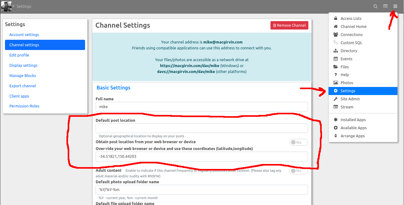 Any post which contains geographic coordinates can be used to search by distance. This allows you to quickly see (for instance) restaurant reviews by performing a distance search on any post near that restaurant. To perform a distance search, click on the avatar or photo of the post author. This opens a popup mini-panel with a number of options. If the post contains coordinates, one of these options will be "Nearby", which performs a distance search based on that post.